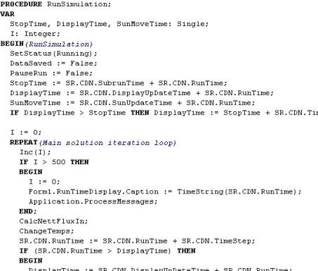 This is an example of a finite element model coded in Delphi™, used to predict the wall temperature in pipelines given latitude, pipe direction etc.